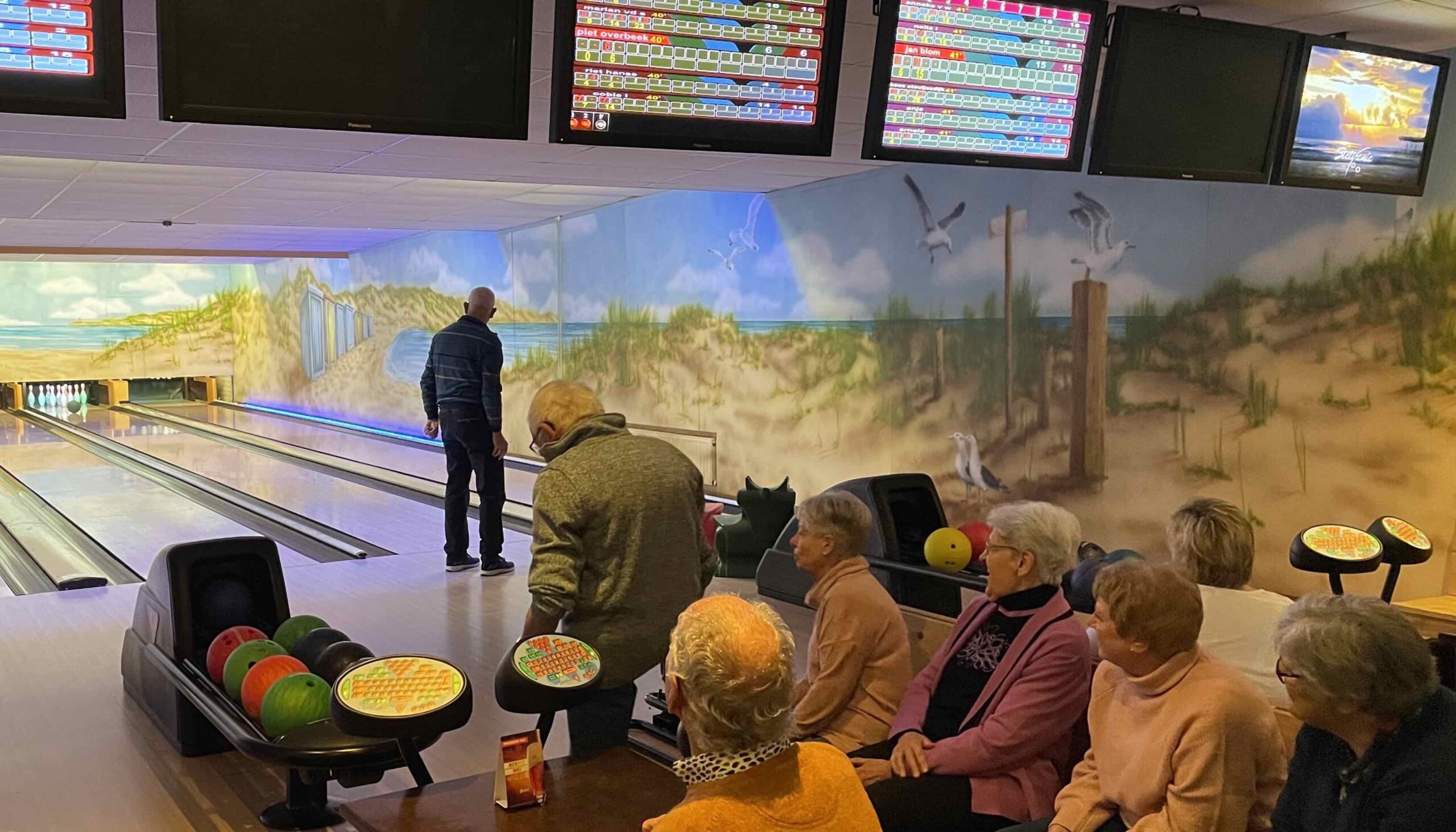 Het bowlen voor de vrijdaggroep.